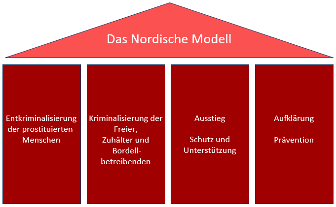 Die CDU/CSU-Bundestagsfraktion hat am 07. November 2023 einstimmig das Positionspapier „Menschenunwürdige Zustände in der Prostitution beenden – Sexkauf bestrafen“ verabschiedet, in dem sie die Einführung des Nordischen Modells in Deutschland fordert. Die CDU/CSU-Fraktion erklärt die bisherige deutsche Prostitutionsgesetzgebung als gescheitert. Sie legt dar, dass dadurch Prostituierte in Deutschland nicht vor sexueller Ausbeutung und Menschenhandel geschützt werden können. Statt der bisherigen Regelungen fordert die CDU/CSU-Bundestagsfraktion eine neue Gesetzgebung, die auf dem Nordischen Modell fußt. Sie schlägt ein Drei-Säulen-Modell vor, das die Aufklärung der Gesellschaft, Ausstiegshilfen für Personen in der Prostitution bei gleichzeitiger Entkriminalisierung derselben sowie die Strafbarkeit aller Profiteure inklusive der Freier beinhaltet.