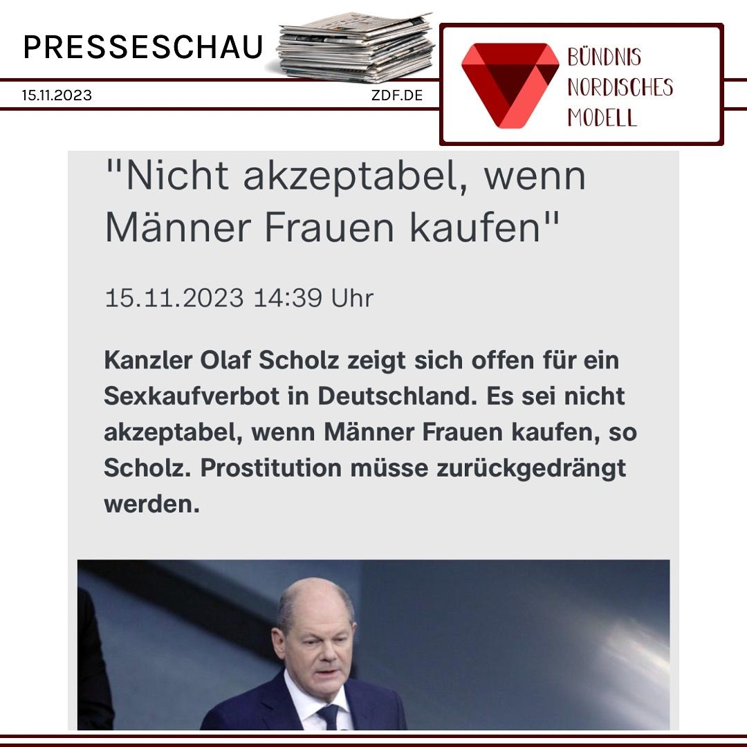 Im Rahmen der Regierungsbefragung am 15.11.2023 hat sich Bundeskanzler Olaf Scholz auf Frage von Dorothee Bär kritisch zu legalem Sexkauf geäußert. „Wir müssen sehr viel unternehmen , um Prostitution zurückzudrängen und den Sexkauf, wie Sie es nennen, nicht als etwas Normales zu akzeptieren, sondern als etwas, das nicht in Ordnung ist.“, so Scholz. Prostitution verhindert die Gleichstellung der Geschlechter.